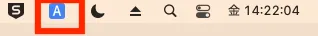 入力する言語の切り替えは,キーボードのスペースキーの左右にある「英数」「かな」キーで行えます.現在の入力言語は,画面右上の青いマークで確認してください.