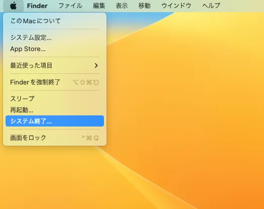 3. 画面左上のアップルマークをクリックし,「再起動」もしくは「システム終了」をクリックしてください.