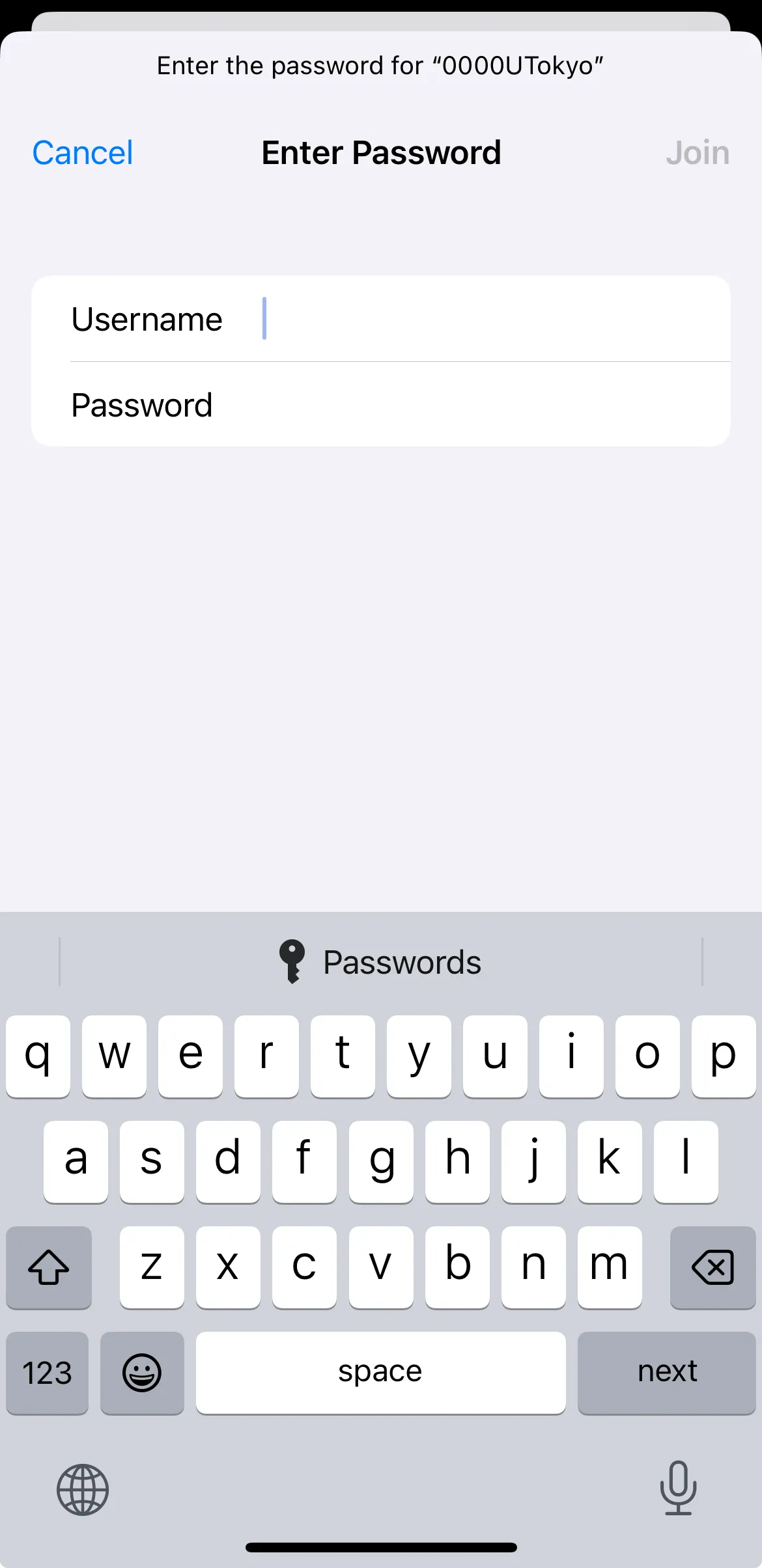PasswordEnter the password of UTokyo Wi-Fi.