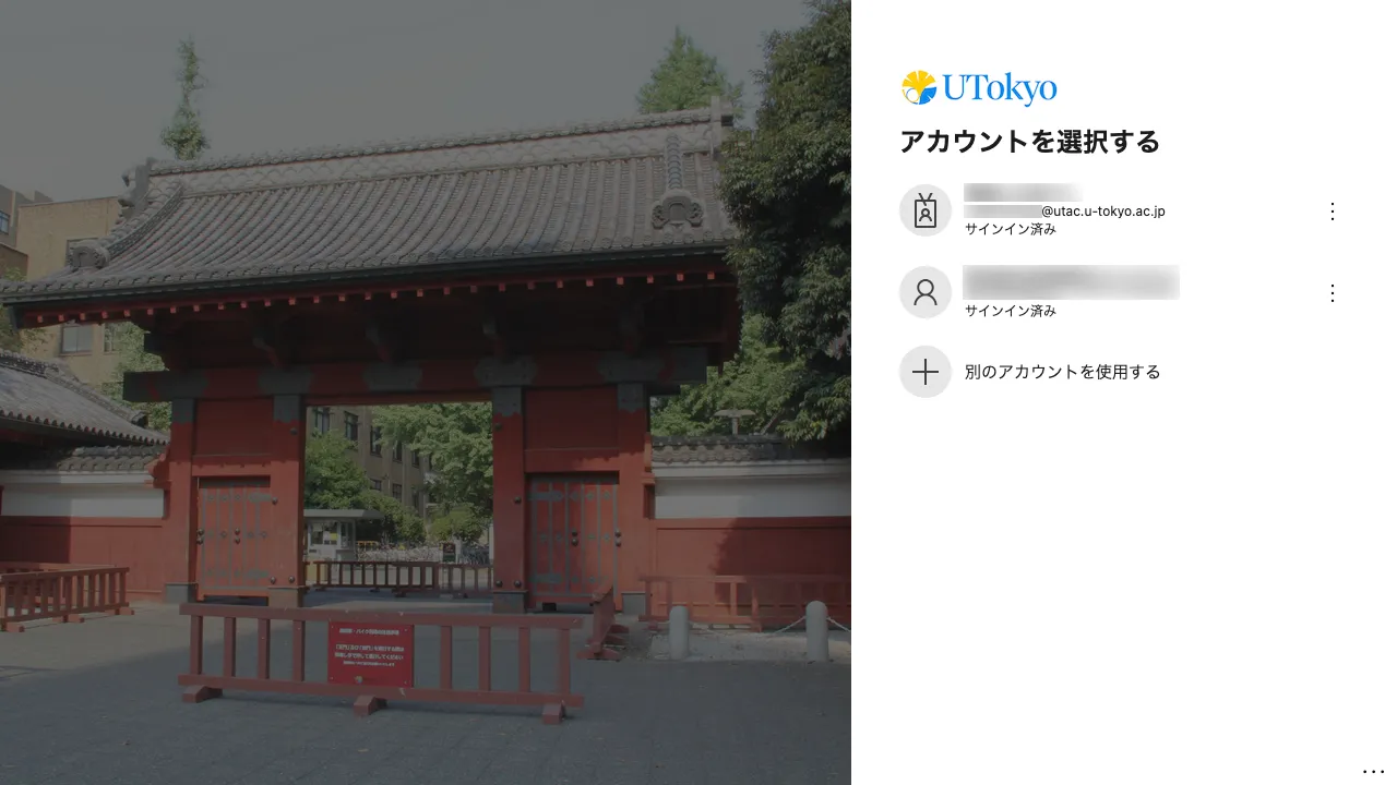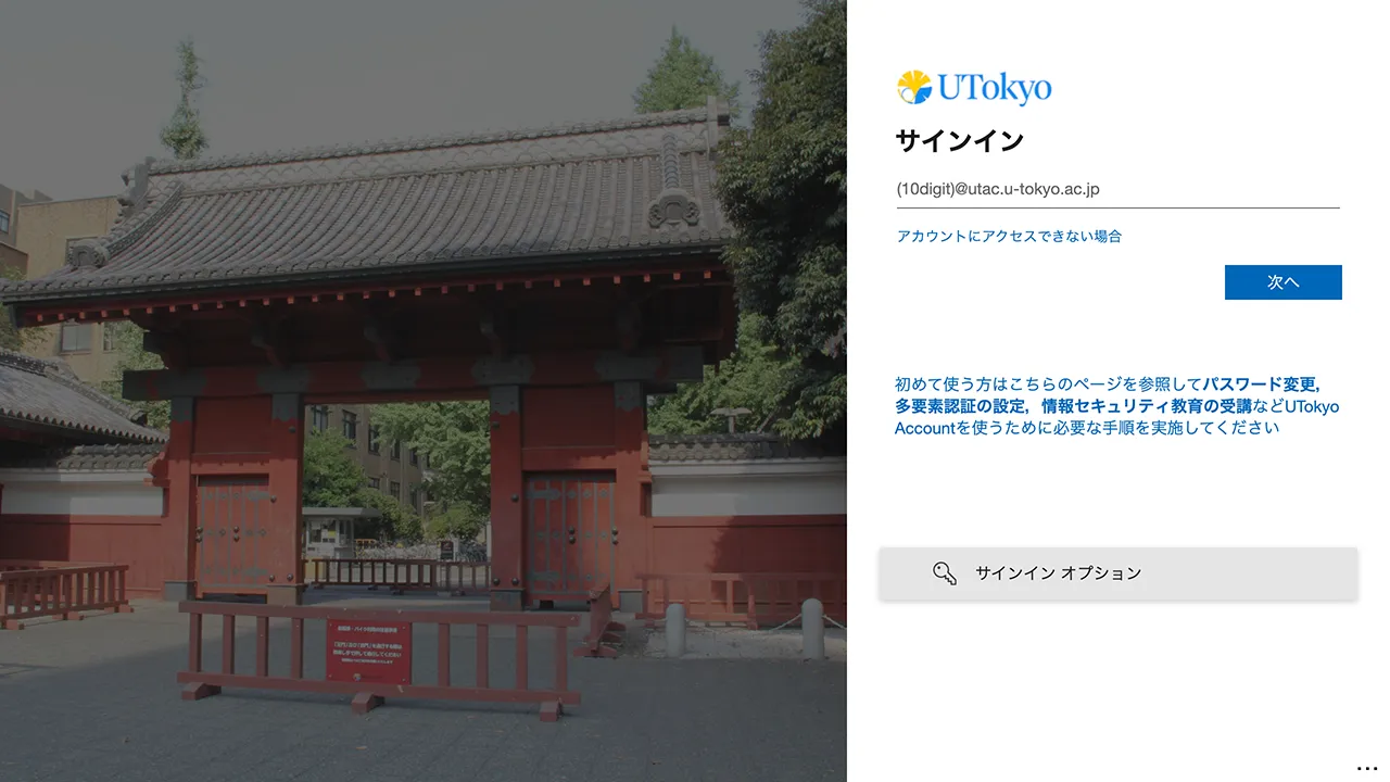@utac.u-tokyo.ac.jp)と仮パスワードを入力してください.サインイン画面が表示されない場合