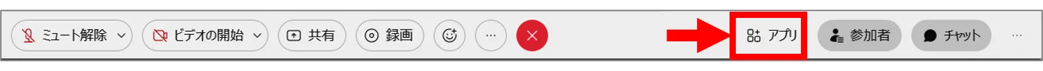 - Webex Meeting開催中に画面下メニューのアプリボタンを押します.