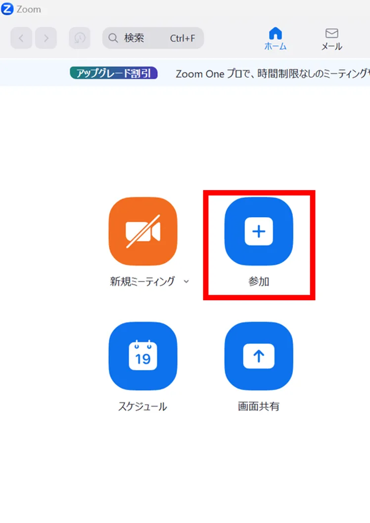 1. Zoomアプリを起動し,「参加」のボタンを押してください.